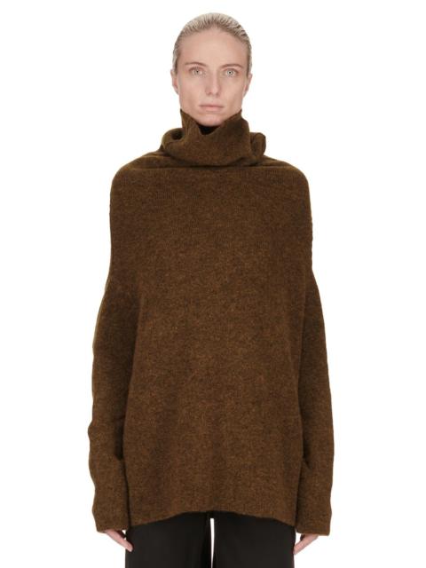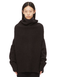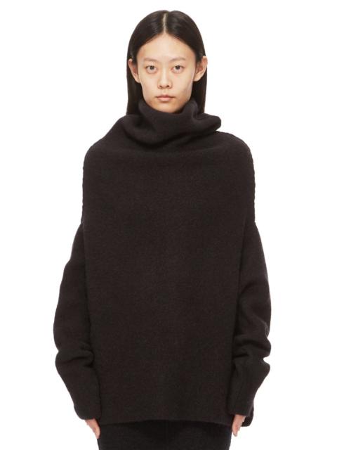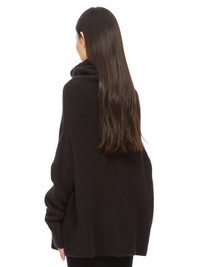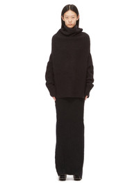 RICK OWENS FW24 PORTERVILLE SHROUD IN BLACK LIGHT ALPACA KNIT THIS SHROUD IS MID-THIGH LENGTH, AND FEATURES A DRAPED TUBULAR NECK THAT WIDENS INTO SHOULDERS AND FALLS TO LOW ARM HOLES WITH LONG SLEEVES. IT HAS A SIGNATURE KNIT CHANNEL RUNNING DOWN THE CENTRE BACK SPINE THIS LIGHTWEIGHT ALPACA BLEND KNIT IS COMPACT WITH A SOFT AND BRUSHED HANDFEEL - COLOR: BLACK - MATERIAL: 48% ALPACA + 30% NYLON + 20% WOOL + 2% ELASTANE - MODEL IS 181CM TALL - MODEL WEARS SIZE S