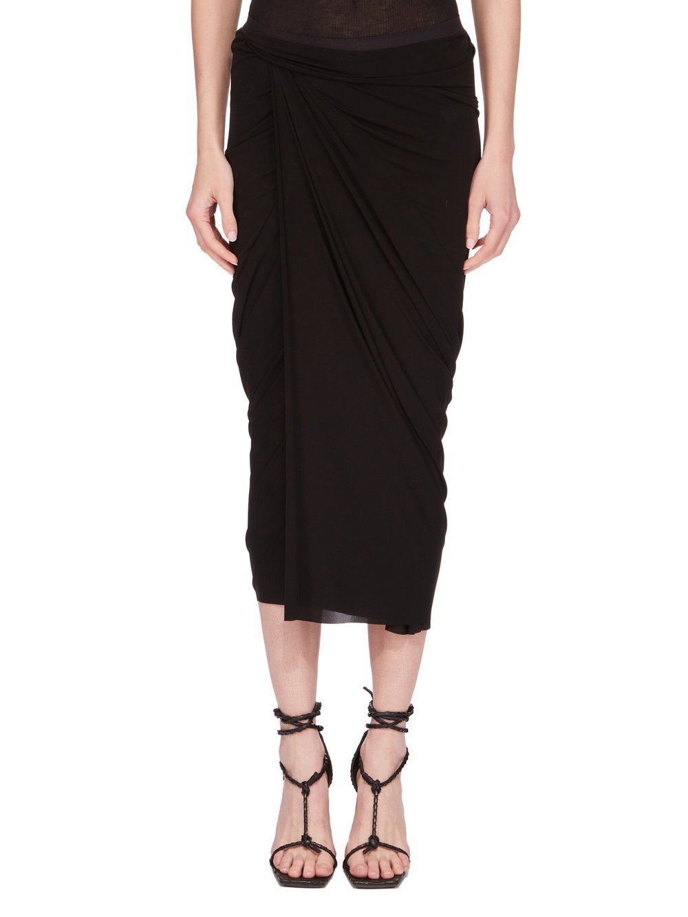wrap midi skirt Highlights - Black - Georgette crepe - Wrap design - Elasticated waistband - Draped detailing - Side slit - Mid-length - Raw-cut hem Made in Italy Composition Cupro 96%, Spandex/Elastane 4% SIZE & FIT Model measurements Height 5 ft 9 in(1.76 m) Bust/Chest 31.49 in(80 cm) Hips 36.61 in(93 cm) Waist 24.4 in(62 cm) FittingInformation This midi-length skirt is intended to be worn just below the waist The elasticated waist allows for a comfortable fit Made from a midweight stretch fabric, this piece offers elasticity and flexibility when worn This piece fits true to size – take your usual size