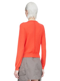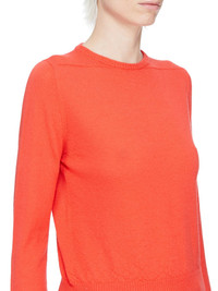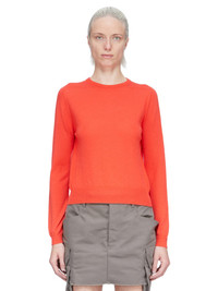 RICK OWENS SS26 TEMPLE BIKER LEVEL IN CORAL LIGHTWEIGHT CASHMERE KNIT THIS BIKER LEVEL ROUND NECK SWEATER IS ABOVE-HIP LENGTH WITH LONG SLEEVES. IT HAS A RIBBED ROUND NECK, CUFFS AND HEM. IT FEATURES SIGNATURE LEVEL SHOULDER SEAMS AND A KNIT LINE RUNNING DOWN THE CENTER BACK SPINE THIS LIGHTWEIGHT AND CLASSIC STITCH CASHMERE KNIT HAS A SOFT HANDFEEL COLOR: CORAL MATERIAL: 100% CASHMERE MODEL IS 181CM TALL MODEL WEARS SIZE S