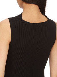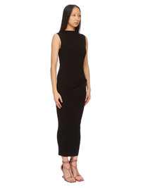 RICK OWENS FW24 PORTERVILLE SL BABEL DRESS IN BLACK RIBBED KNIT THIS LS BABEL TOP IS HIP-LENGTH, WITH LONG SLIM SLEEVES. IT HAS A HIGH BOAT NECK, AND A DRAPE ON THE LEFT HIP WITH SLIGHT RISING ON THE RIGHT. IT HAS THE SIGNATURE KNIT CHANNEL RUNNING DOWN THE CENTRE BACK SPINE THIS IS A STRETCH RIB KNIT WITH A DRY HAND - COLOR: BLACK - MATERIAL: 68% VISCOSE + 32% POLYESTER - MODEL IS 181CM TALL - MODEL WEARS SIZE S