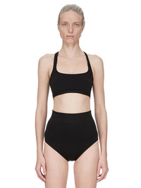 RICK OWENS FW25 CONCORDIANS UNHORNY TOP IN BLACK ACTIVE KNIT THIS UNHORNY TOP IS A TANK TOP BATHER WITH A WIDE SQUARE NECKLINE AND THIN SHOULDER STRAPS THAT FLOW INTO A RACER BACK. IT FEATURES A SEAMLESS KNIT, WITH A RIBBED BAND UNDER THE BUST AND KNIT GEOMETRIC SIDE LINE DETAILS THIS MEDIUMWEIGHT ACTIVE KNIT IS KNITTED WITH ELASTANE FOR COMFORT COLOR: BLACK MATERIAL: 95% NYLON + 5% ELASTANE MODEL IS 181CM TALL MODEL WEARS SIZE S