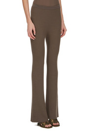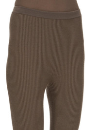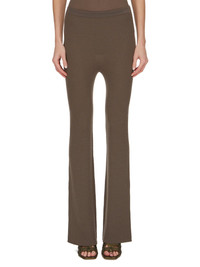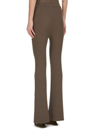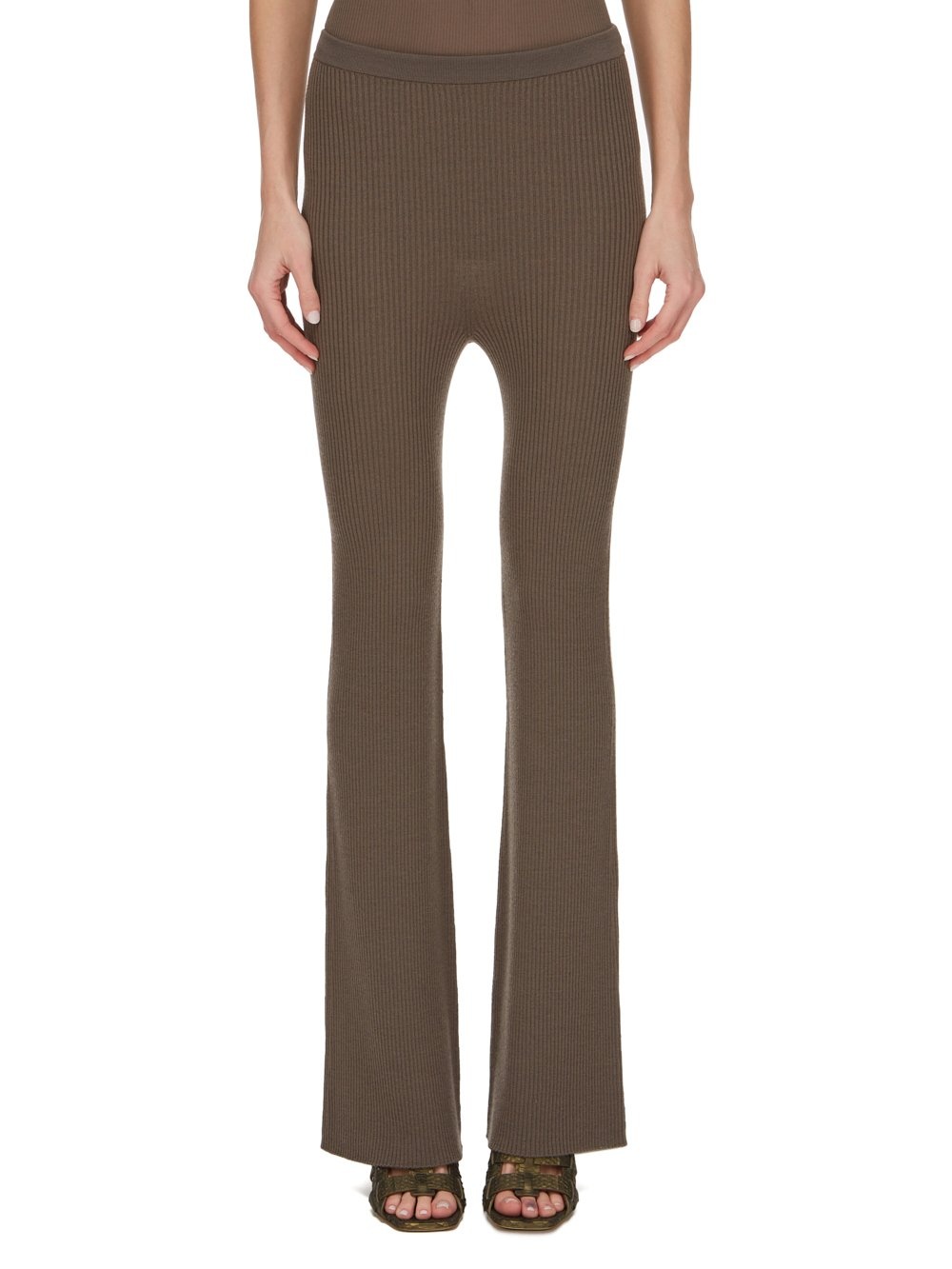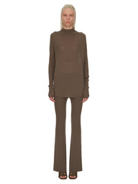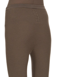 RICK OWENS FW23 LUXOR WIDE LEG PANTS IN DUST GREY LIGHTWEIGHT RIBBED KNIT THESE WIDE LEG PANTS ARE FLOOR LENGTH WITH A HIGH WAIST. THEY HAVE A LOOSE LEG THAT FLARES SLIGHTLY FROM THE KNEE AND A KNIT WAISTBAND THIS IS A LIGHTWEIGHT AND SOFT CLASSIC RIBBED WOOL KNIT - COLOR: DUST GREY - MATERIAL: 97% NEW WOOL + 2% NYLON + 1% ELASTANE - MODEL IS WEARING SIZE S - MODEL IS 181 CM TALL