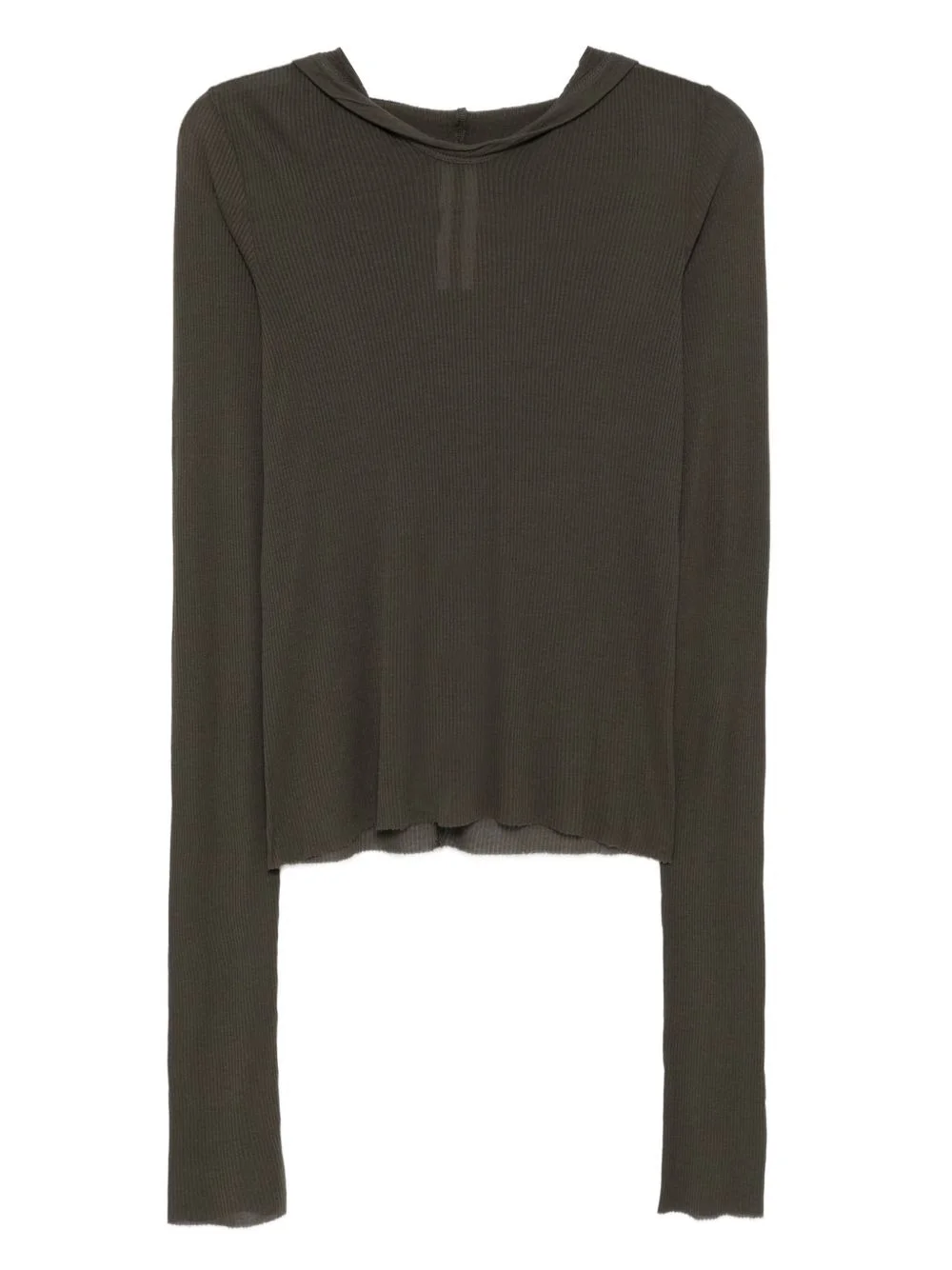 ribbed hoodie Highlights - Khaki green - Long sleeves - Crew neck - Raw-cut hem Made in Italy Composition Viscose 88%, Silk 12% SIZE & FIT Model measurements Height 5 ft 9 in(1.76 m) Bust/Chest 31.1 in(79 cm) Hips 35.03 in(89 cm) Waist 24.4 in(62 cm) FittingInformation Designed for a slim fit that sits just away from the body offering a close yet comfortable fit Made from a midweight non-stretch fabric, this piece offers minimal elasticity when worn Washing instructions Hand Wash