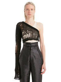 RICK OWENS SS22 FOGACHINE ZIGGY NET IN RECYCLED CASHMERE NET THIS AL SKIRT IS FLOOR-LENGTH AND HAS A CLOSE TO THE BODY FIT. IT HAS CURVED KNIT SEAMED PANELS AND FEATURES A CENTRE BACK SLIT TO MID-THIGH UNEVEN CASHMERE NET KNIT - COLOR:BLACK - MATERIAL: 97% CASHMERE + 3% WOOL - MODEL IS WEARING SIZE S - MODEL IS 181 CM TALL