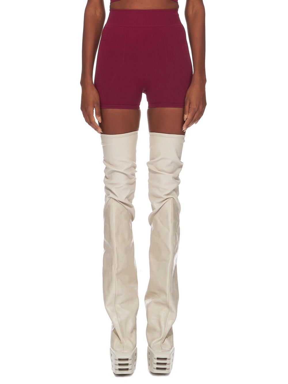 RICK OWENS SS23 EDFU RUNWAY BRIEFS IN ACTIVE KNIT THESE BRIEFS FINISH HIGH ON THE THIGH AND ARE SKIN TIGHT. THEY FEATURE A SEAMLESS KNIT, WITH RIBBED WAISTBAND CUFFS, AND KNIT GEOMETRIC LINE DETAILS ON FRONT AND SIDES THIS IS A SPORT-LIKE ACTIVE KNIT - COLOR: FUCHSIA - MATERIAL: 95% NYLON + 5% ELASTANE - MODEL IS WEARING SIZE 40 - MODEL IS 181 CM TALL