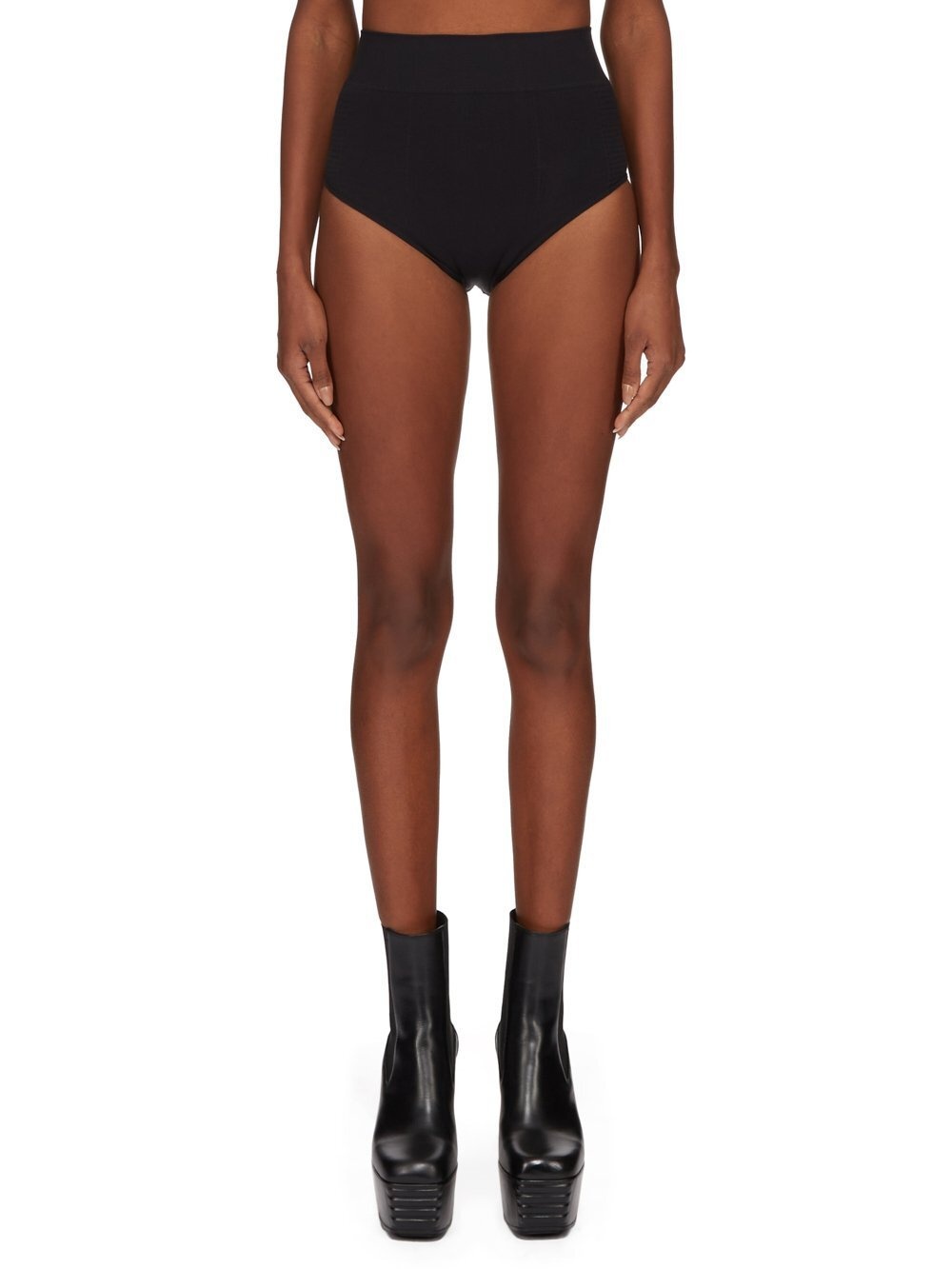 RICK OWENS FW23 LUXOR PANTIES IN BLACK ACTIVE KNIT THESE PANTIES ARE A TIGHT FITTING, HIGH WAISTED BRIEF AND FEATURE KNIT GEOMETRIC LINE DETAILS ON SIDES THIS IS A SPORT-LIKE ACTIVE KNIT - COLOR: BLACK - MATERIAL: 95% NYLON + 5% ELASTANE - MODEL IS WEARING SIZE S - MODEL IS 181 CM TALL