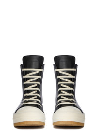 RICK OWENS FW25 CONCORDIANS CREEP SNEAKERS IN BLACK/MILK/MILK FULL GRAIN COW LEATHER THESE SNEAKERS ARE ABOVE-ANKLE HEIGHT AND FEATURE SEVEN EYELETS, LACES, A ZIPPER ON THE INSIDE ANKLE FOR EASY FASTENING, TOE CAPS AND OUR NATURAL CREEPER SOLE. THIS MEDIUMWEIGHT FULL GRAIN COW LEATHER HAS A FLAT AND MATTE SURFACE FINISH AND IS SPECIFICALLY TANNED FOR SHOES WITH AN ABRASION-RESISTANT FINISH. THIS TANNERY IS LWG CERTIFIED WITH A BRONZE RATING. COLOR: BLACK/MILK/MILK MATERIAL: UPPER 100% COW LEATHER TOE 100% CALF LEATHER LINING 100% CALF LEATHER INSOLE 100% CALF LEATHER SOLE 100% THERMOPLASTIC RUBBER SOLE DETAIL 100% RUBBER SOLE HEIGHT 3.5CM LOWER SOLE HEIGHT 1CM
