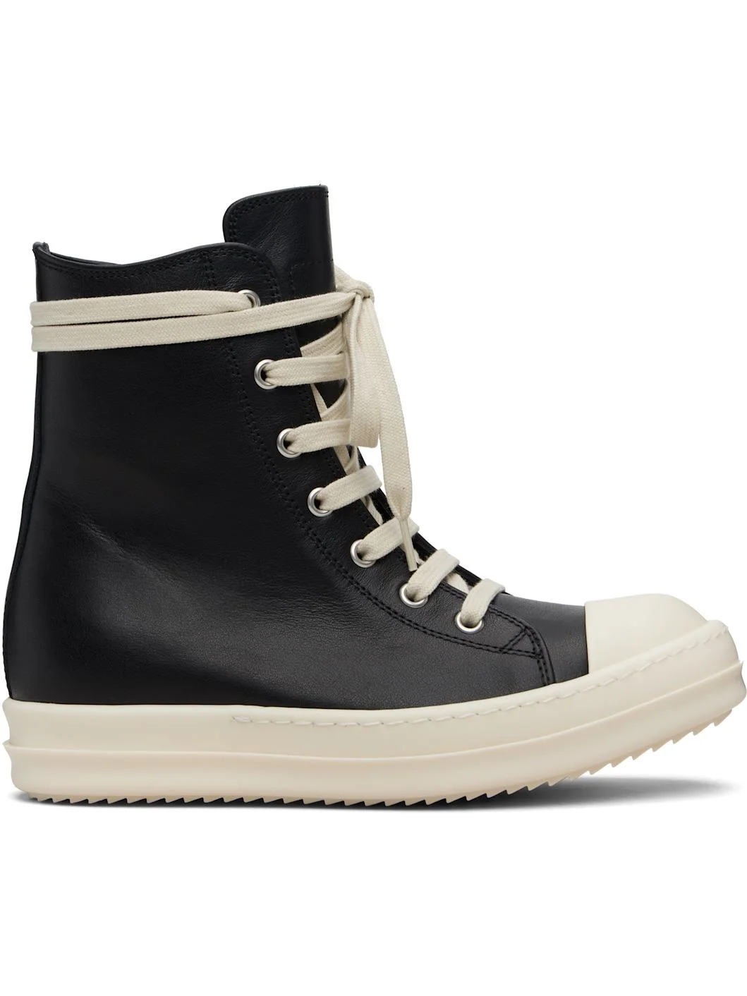 High-top vegetable-tanned grained calfskin sneakers. · Cap toe · Lace-up closure · Zip closure and metal eyelets at inner side · Treaded rubber sole Supplier color: Black/Milk/Milk Upper: calfskin. Sole: rubber. Made in Italy 261232F127006