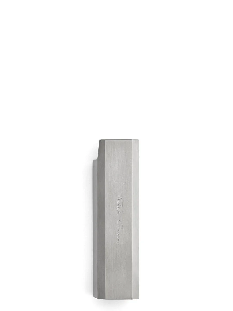 RICK OWENS SS26 TEMPLE RUNWAY LIGHTER HOLDER IN BRASS THIS LIGHTER HOLDER FITS A SMALL LIGHTER SIZED 6.2CM THIS JEWELRY PIECE HAS A SEMI-SHINY BRUSHED PALLADIUM FINISH. COLOR: PALLADIUM MATERIAL: 100% BRASS