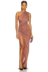 Details - 100% viscose - Hand wash - Unlined - Pull-on styling - One shoulder styling - Ruched sides - Front slit - Midweight jersey fabric - Made in Italy - Our Style No. ROWE-WD59 - Manufacturer Style No. LI02E3505-RV