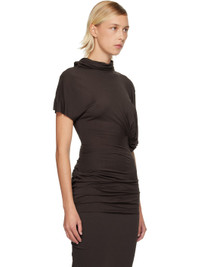 Viscose jersey T-shirt. · Asymmetrical draped construction · Cowl neck · Twisted detailing at waist · Cutout at back collar Supplier color: Raisin 100% viscose. Made in Italy 252039F110007