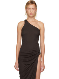 FSC®-certified viscose jersey tank top. · Single-shoulder construction · Raw edge at curved hem · Central seam at back Supplier color: Raisin 100% viscose. Made in Italy 252039F111004