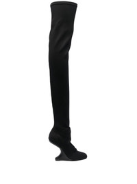 Cantilever 11 thigh-high boots Rick Owens is renowned for the elongated and exaggerated proportions of its designs. These boots are emblematic of this design approach as they feature the brand’s Cantilever sculpted heel and stretch up beyond the knee. The jet-black colourway lends this pair a sleek feel. Made in Italy Composition Sole: Calf Leather 100% Outer: Fabric 100% Lining: Fabric 100% SIZE & FIT Measurement HEEL 5.11 in(13 cm) HEIGHT 29.13 in(74 cm) Sole height 0.39 in(1 cm)