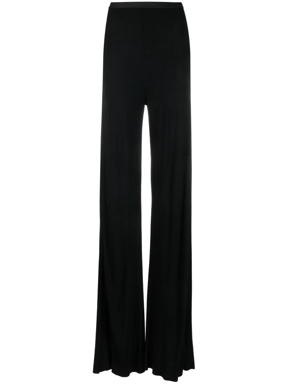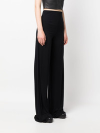 high-waisted long-length trousers Rick Owens Lillies' distinctive minimalist style is showcased on this pair of trousers through innovative yet understated detailing such as a monochromatic hue and exaggerated length. Highlights - Black - High waist - Wide leg - Long length Made in Italy Composition Viscose 100% SIZE & FIT Model measurements Height 5 ft 11 in(1.8 m) Bust/Chest 31.49 in(80 cm) Hips 36.41 in(92.5 cm) Waist 25.59 in(65 cm) FittingInformation Designed with a wide-leg cut, these trousers allow for a close fit at the waist and offer a loose and roomy fit over the leg The elasticated waist allows for a comfortable fit Made from a midweight non-stretch fabric, this piece offers minimal elasticity when worn This piece fits true to size – take your usual size Washing instructions Hand Wash