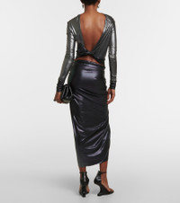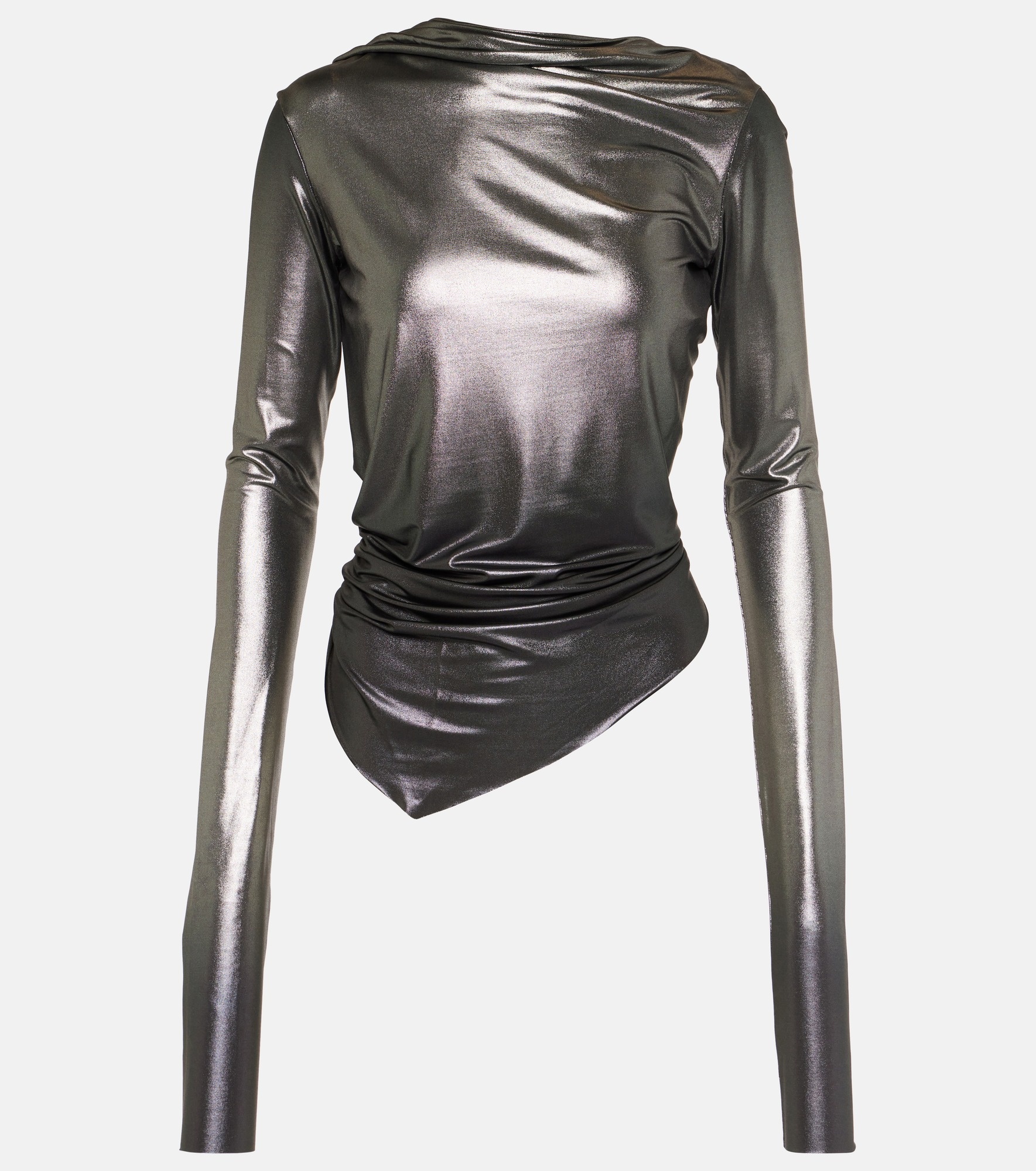 Rick Owens' Lilies line offers minimalist staples that riff off of the brand's avant-garde aesthetic, like this top. Made from a glossy metallic-effect jersey, this long-sleeved style features a tight fitted silhouette that softly ruches on the waist. Product Details - Material: 95% viscose, 5% elastane - Care instructions: hand wash - Made in Italy - Designer color name: Silver Degrade - Item number: P00856039 Size & Fit - True to size - Low back - Cinched waist - Mid-weight material - Stretchy fabric - Slightly cropped - The model seen in the picture is 178cm-5'10" and wearing a size IT 40