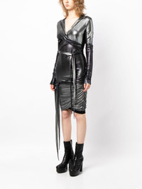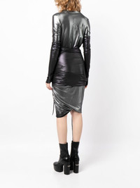Luxor Emma asymmetric minidress Highlights - Silver-tone - Stretch-jersey - Gradient effect - Gathered detailing - Draped detailing - Asymmetric design - V-neck - Front tie fastening - Long sleeves - Asymmetric hem - Above-knee length Made in Italy Composition Viscose 95%, Elastane 5% SIZE & FIT Model measurements Height 5 ft 10 in(1.77 m) Bust/Chest 33.46 in(85 cm) Hips 35.43 in(90 cm) Waist 23.62 in(60 cm) FittingInformation Designed for a close fit throughout Made from a midweight stretch fabric, this piece offers elasticity and flexibility when worn This piece fits close in all sizes – take your usual size Washing instructions Hand Wash