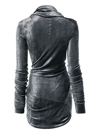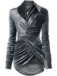 Magnetic top Highlights - Dark grey - Fsc viscose blend - Velour - Asymmetric design - Ruched detailing - Long sleeves - Curved hem Made in Italy Composition FSC Viscose 83%, Polyamide 17%