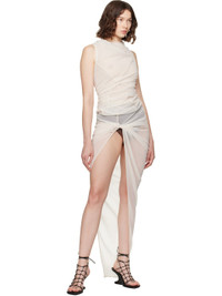Sheer polyester organza maxi skirt. · Asymmetrical construction · Elasticized waistband · Knotted detailing at front · Unlined Supplier color: Dove 100% polyester. Made in Italy 251039F093001