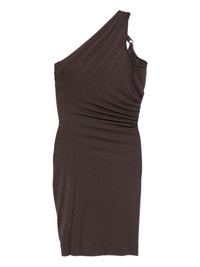 one-shoulder draped dress Highlights - Brown - One-shoulder design - Draped neckline - Gathered bodice - Asymmetrical hem Imported Composition Fabric 100% Washing instructions Read Manufacturer Guidelines