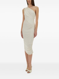 one-shoulder draped midi day dress