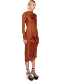 Viscose jersey midi dress. · FSC-certified viscose · Asymmetric boatneck · Gathering at front and back · Offset slit at hem · Ruching at side seam Supplier color: Orange 100% viscose. Made in Italy 252039F054001