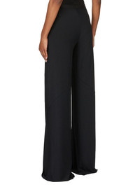 RICK OWENS SS25 HOLLYWOOD FARRAH BIAS PANTS IN BLACK VISCOSE CREPE JERSEY THESE FARRAH BIAS PANTS ARE FLOOR LENGTH, WITH A LOOSE FIT. THEY HAVE AN ELASTICIZED WAISTBAND WIDE DRAPED LEGS, WITH BIAS SEAMS THIS LIGHTWEIGHT AND FLUID VISCOSE CREPE JERSEY IS STRETCHY AND HAS A MATTE CREPE FACE SIDE AND A SOFT BACKSIDE. THIS JERSEY IS MADE FROM FSC® - CERTIFIED (FSC -C162846) VISCOSE WHICH ENSURES THAT THE FIBERS ARE PRODUCED FROM RESPONSIBLY MANAGED SOURCES AND NO DEFORESTATION OCCURS COLOR: BLACK MATERIAL: 78% VISCOSE + 17% POLYAMIDE + 5% ELASTANE MODEL IS 181CM TALL MODEL WEARS SIZE 40