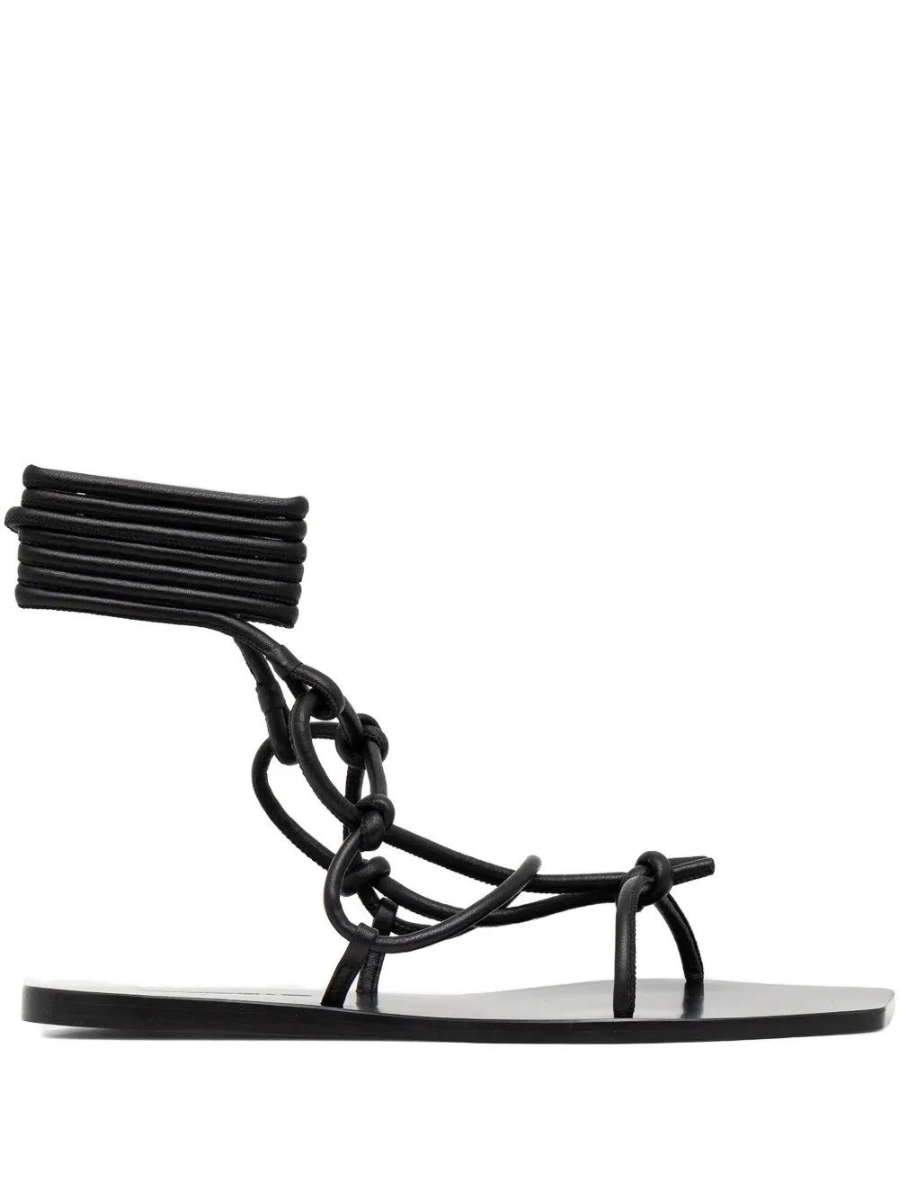 Penta knotted leather sandals Highlights - Black - Leather upper - Knotted straps - Flat sole - Ankle tie fastening - Square toe Imported Composition Lining: Leather 100% Sole: Leather 100% Outer: Leather 100%