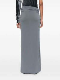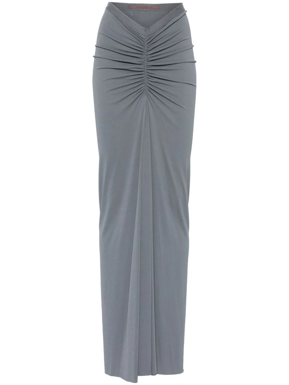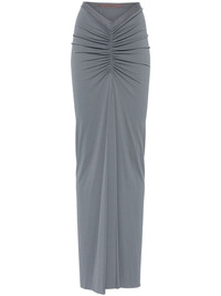 Poppy skirt Highlights - Slate grey - Crepe texture - High waist - Elasticated waistband - Ruched detailing - Gathered detailing - Unlined - Straight hem - Long length Made in Italy Composition FSC Viscose 78%, Polyamide 17%, Elastane 5% SIZE & FIT Model measurements Height 5 ft 10 in(1.77 m) Bust/Chest 33.07 in(84 cm) Hips 37 in(94 cm) Waist 24.8 in(63 cm) FittingInformation This maxi-length skirt is intended to be worn just below the waist The elasticated waist allows for a comfortable fit Made from a lightweight stretch fabric, this piece offers elasticity and flexibility when worn