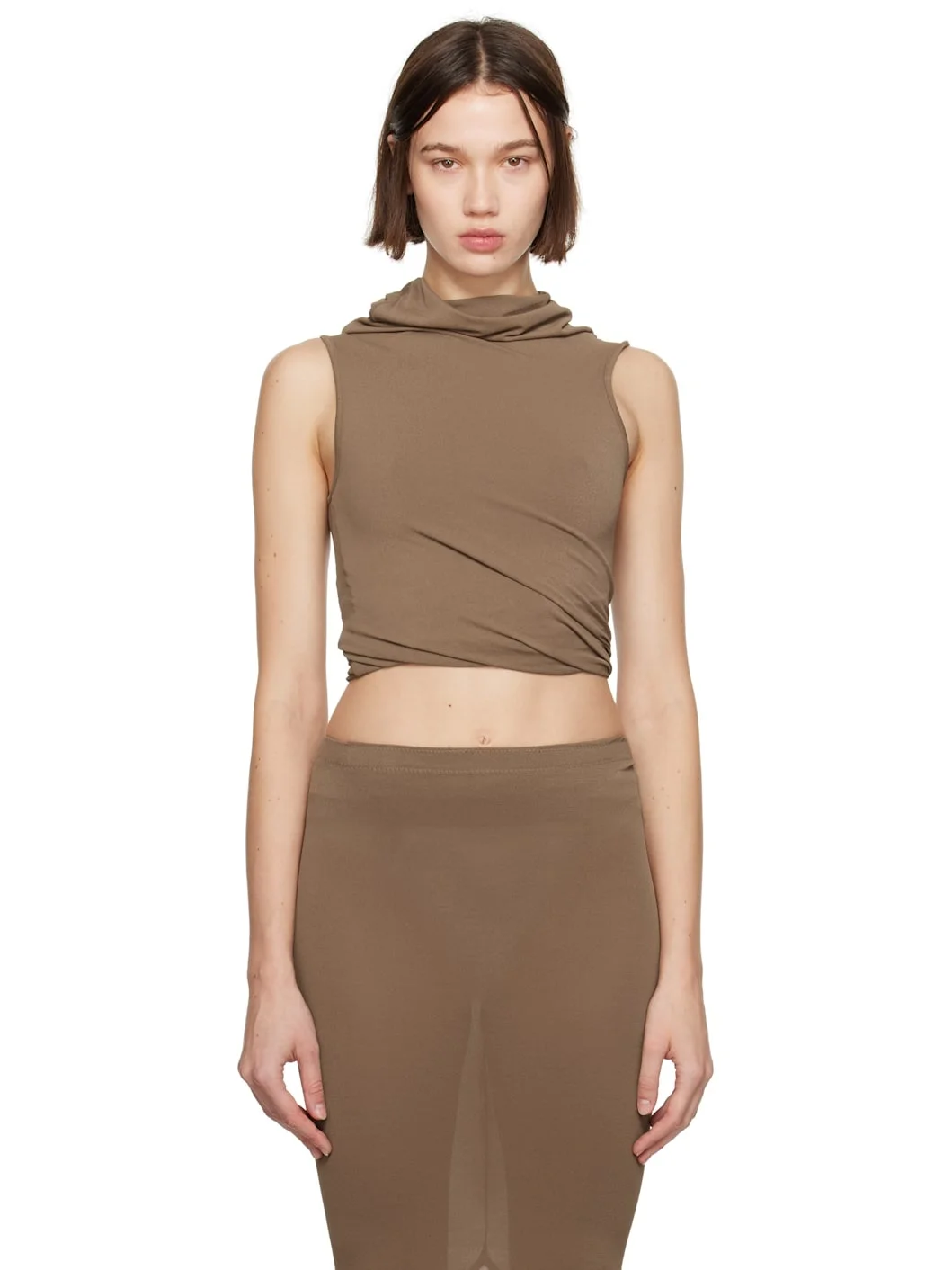 Stretch FSC® certified viscose-blend crepe jersey T-shirt. · Draping throughout · Asymmetric neckline Supplier color: Tan 78% viscose, 17% nylon, 5% elastane. Made in Italy 242039F110017