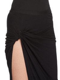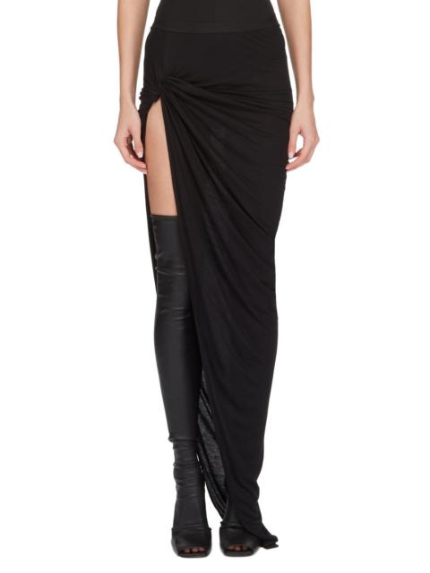 RICK OWENS LILIES SS24 LIDO TWIST EDFU SKIRT IN BLACK FLUID VISCOSE JERSEY THIS TWIST EDFU SKIRT IS ANKLE LENGTH. IT HAS AN ELASTIC WAISTBAND AND A TWIST ON THE RIGHT HIP, THAT CREATES A HIGH, LEG REVEALING, SPLIT AND A DRAPED SKIRT THIS MEDIUMWEIGHT AND FLUID VISCOSE JERSEY AND HAS A SOFT AND LIGHTLY BRUSHED HANDFEEL THIS JERSEY IS MADE FROM FSC® CERTIFIED VISCOSE WHICH ENSURES THAT THE FIBERS ARE PRODUCED FROM RESPONSIBLY MANAGED SOURCES AND NO DEFORESTATION OCCURS - COLOR: BLACK - MATERIAL: 100% VISCOSE - MODEL IS 181CM TALL - MODEL WEARS SIZE 40
