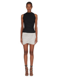 RICK OWENS FW25 CONCORDIANS LUNA SKIRT IN PEARL CASHMERE BLEND JERSEY THIS LUNA SKIRT IS MID-THIGH LENGTH WITH AN ELASTICIZED WAISTBAND. IT HAS A BODY HUGGING FIT AND DRAPES ACROSS THE BODY FROM RIGHT TO LEFT ALONG A BIAS SEAM AND MULTIPLE DRAPINGS THIS MEDIUMWEIGHT AND FLUID MODAL AND CASHMERE BLEND JERSEY HAVE A SOFT AND WARM HANDFEEL COLOR: PEARL MATERIAL: 85% MODAL 9% CASHMERE 6% ELASTANE MODEL IS 181CM TALL MODEL WEARS SIZE 40