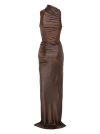 Svita midi dress Highlights - Rust brown - Mock neck - Sleeveless - Side slit - Draped detailing Made in Italy Composition FSC Viscose 94%, Elastane 6%