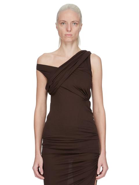 RICK OWENS LILIES FW25 CONCORDIANS LUNA TOP IN BLACK CASHMERE BLEND JERSEY THIS LUNA TOP IS HIP LENGTH AND SLEEVELESS. IT FEATURES A HIGH DRAPED NECKLINE AND HAS A BODY HUGGING FIT THAT DRAPES ACROSS THE BODY FROM RIGHT TO LEFT ALONG A BIAS SEAM THIS LIGHTWEIGHT AND FLUID VISCOSE CREPE JERSEY IS STRETCHY AND HAS A MATTE CREPE FACE SIDE AND A SOFT BACKSIDE.THIS JERSEY IS MADE FROM FSC® - CERTIFIED (FSC - C162846) VISCOSE WHICH ENSURES THAT THE FIBERS ARE PRODUCED FROM RESPONSIBLY MANAGED SOURCES AND NO DEFORESTATION OCCURS COLOR: BLACK MATERIAL: 78% VISCOSE + 17% NYLON + 5% ELASTANE MODEL IS 181CM TALL MODEL WEARS SIZE 40