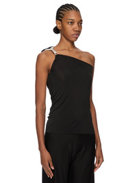 RICK OWENS FW25 CONCORDIANS HYDRA TOP IN BLACK SATIN VISCOSE JERSEY THIS HYDRA TOP IS HIP LENGTH. IT HAS AN ASYMMETRICAL TOP, DRAPING ACROSS THE BODY TO THE RIGHT SHOULDER, WITH AN OPENING EXPOSING THE CHEST. IT DRAPES ACROSS THE BODY AND INTO THE LEFT HIP. IT FEATURES A SILVER, 3 PRONG HYDRA HOOK CLIP, MADE FROM ZINC AND NICKEL FREE PALLADIUM ON THE RIGHT SHOULDER THIS MEDIUMWEIGHT AND FLUID VISCOSE JERSEY HAS A GLOSSY SURFACE AND A COLD AND SOFT HANDFEEL THIS JERSEY IS MADE FROM FSC® – C162846 CERTIFIED VISCOSE WHICH ENSURES THAT THE FIBERS ARE PRODUCED FROM RESPONSIBLY MANAGED SOURCES AND NO DEFORESTATION OCCURS COLOR: BLACK MATERIAL: 100% VISCOSE MODEL IS 181CM TALL MODEL WEARS SIZE 40