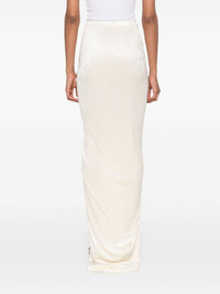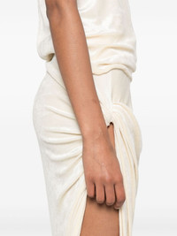 Twist Edfu maxi skirt Highlights - Ecru - Velvet - Draped design - High waist - Elasticated waistband - Ruched detailing - Twist detailing - Side slit - Unlined - Straight hem - Long length Made in Italy Composition FSC Viscose 83%, Polyamide 17% SIZE & FIT Model measurements Height 5 ft 10 in(1.77 m) Bust/Chest 33.07 in(84 cm) Hips 37 in(94 cm) Waist 24.8 in(63 cm) FittingInformation Designed with an asymmetric hem, this skirt is intended to be worn just below the waist The elasticated waist allows for a comfortable fit Made from a midweight non-stretch fabric, this piece offers minimal elasticity when worn