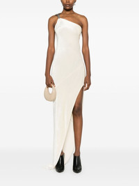 velour maxi dress Highlights - Off-white - Velour - One-shoulder - Sleeveless - Side slit - Asymmetric hem - Long length Made in Italy Composition FSC Viscose 83%, Polyamide 17% Washing instructions Dry Clean Only