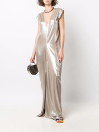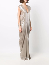 lobster-cut sleeveless gown warm silver metallic effect V-neck sleeveless draped design Made in Italy Composition Viscose 100% SIZE & FIT Model measurements Height 5 ft 9 in(1.76 m) Bust/Chest 33.07 in(84 cm) Hips 34.64 in(88 cm) Waist 25.59 in(65 cm) FittingInformation This piece fits true to size. We recommend you get your regular size Cut for a loose fit Made with a lightweight fabric Washing instructions Hand Wash