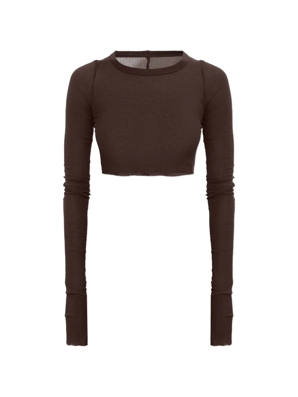 long-sleeve cropped top Highlights - Brown - Ribbed knit - Round neck - Long-sleeve - Cropped - Seam detail Made in Italy Composition Viscose 88%, Silk 12% Washing instructions Read Manufacturer Guidelines