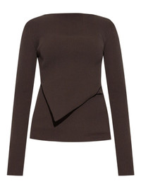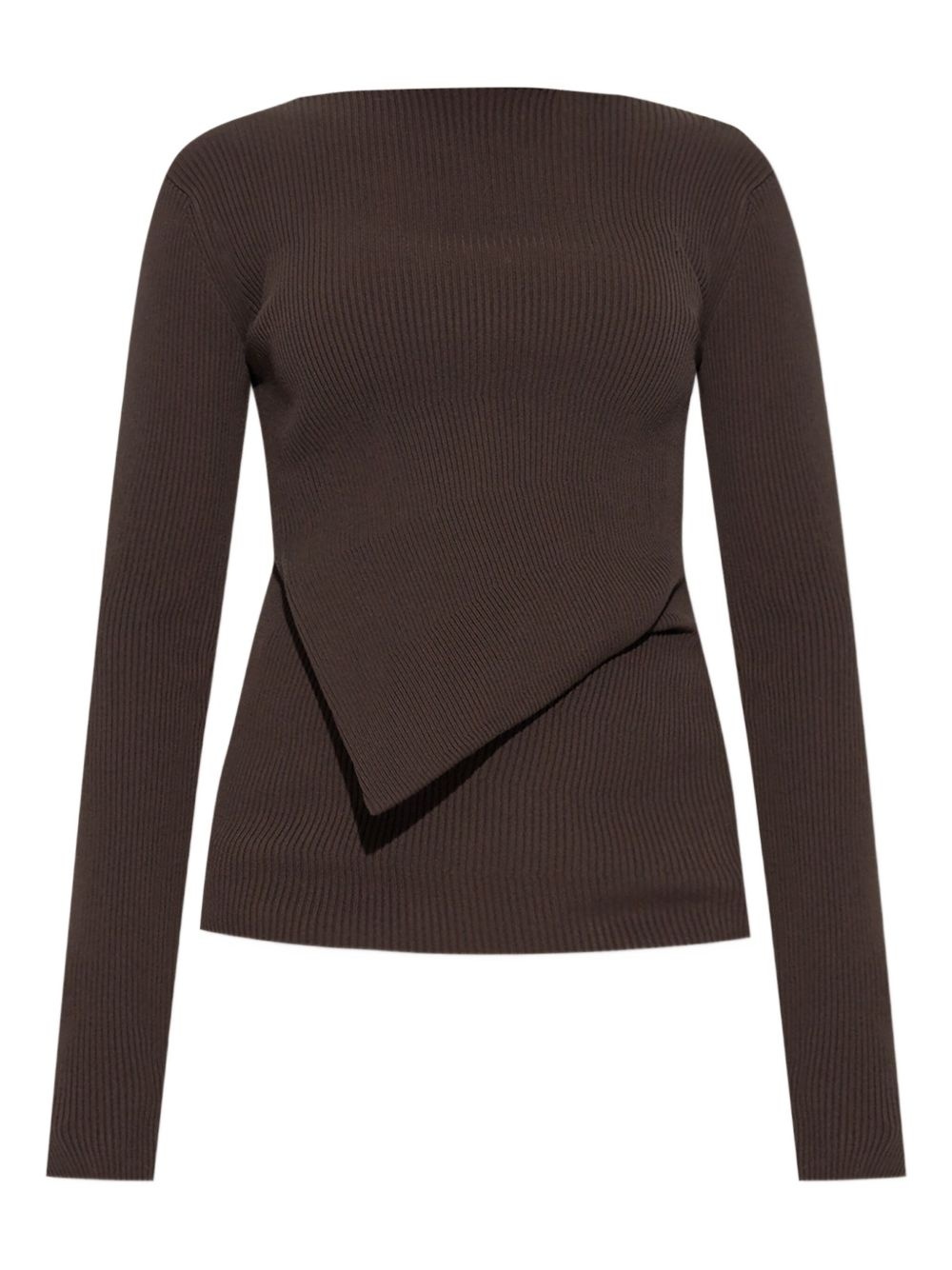 ribbed asymmetric sweater Highlights - Dark brown - Ribbed knit - Asymmetric design - Long sleeves Made in Italy Composition Viscose 68%, Polyester 32% Washing instructions Read Manufacturer Guidelines