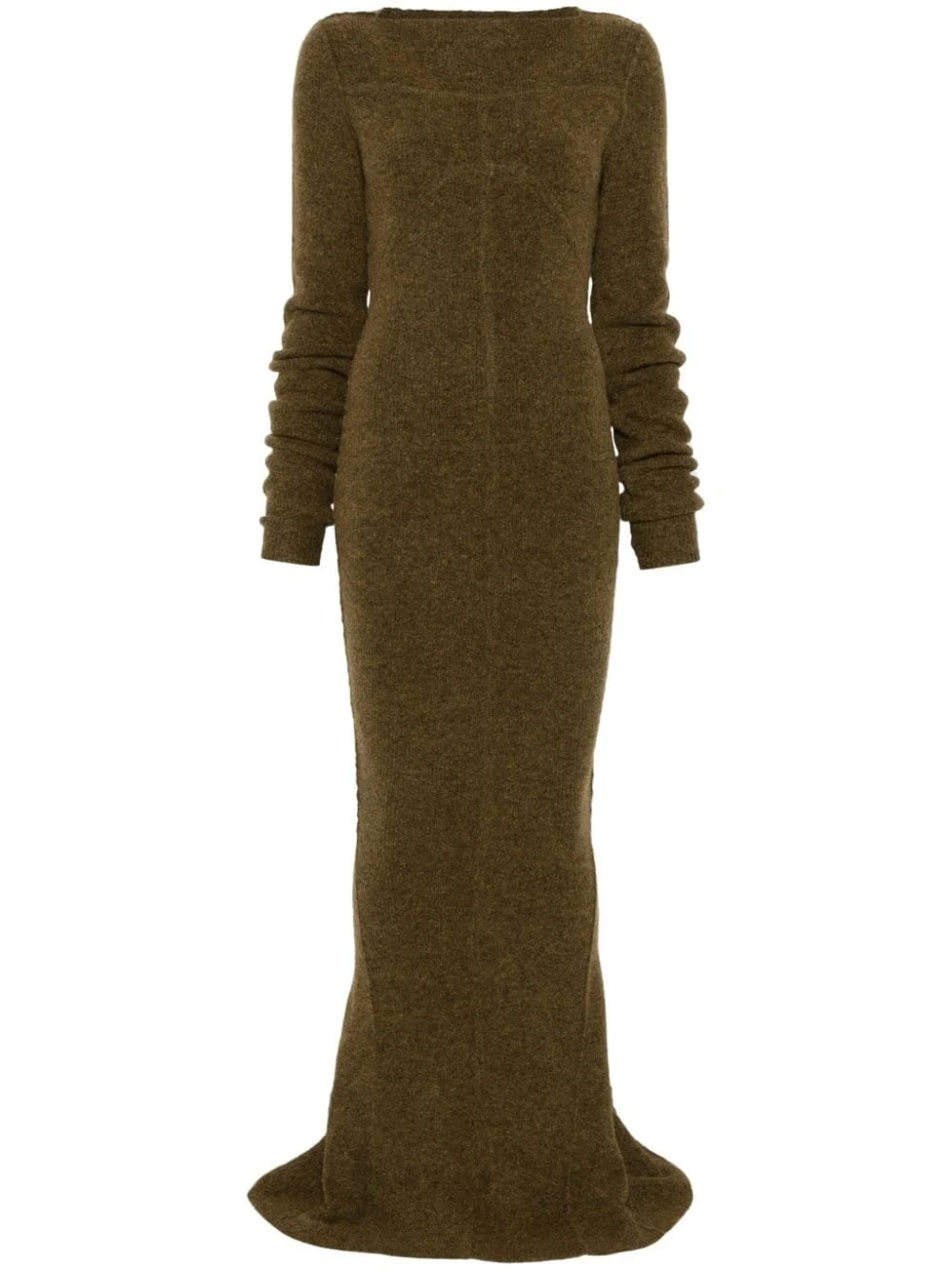 Luna gown Highlights - Honey brown - Stretch-design - Melange effect - Knitted construction - Felted - Raised seam detail - Round neck - Oversize long sleeves - Open back - Train Made in Italy Composition Alpaca Wool 48%, Polyamide 30%, Wool 20%, Elastane 2% SIZE & FIT Model measurements Height 5 ft 11 in(1.8 m) Bust/Chest 32.67 in(83 cm) Hips 35.82 in(91 cm) Waist 25.98 in(66 cm) FittingInformation Designed for a close fit throughout Particularly long in length; consider your own measurements Made with a midweight knit, this piece offers some stretch