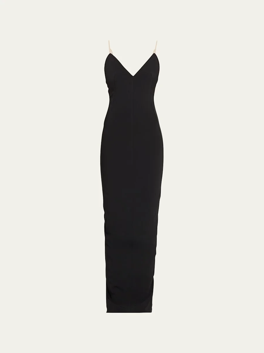 Crafted from woven crepe, the "Maillot" gown from Rick Owens features a slim silhouette with contrast shoulder straps and a low scoop back with a zipper detail V neckline; low back Sleeveless; adjustable spaghetti straps Column silhouette Full length Walking vent back Back zip Viscose/acetate/elastane Lining: Cotton/elastane Dry clean Made in Italy SIZE amp; FITModel measurements: 5'10" tall Model is wearing a US size 4/Small
