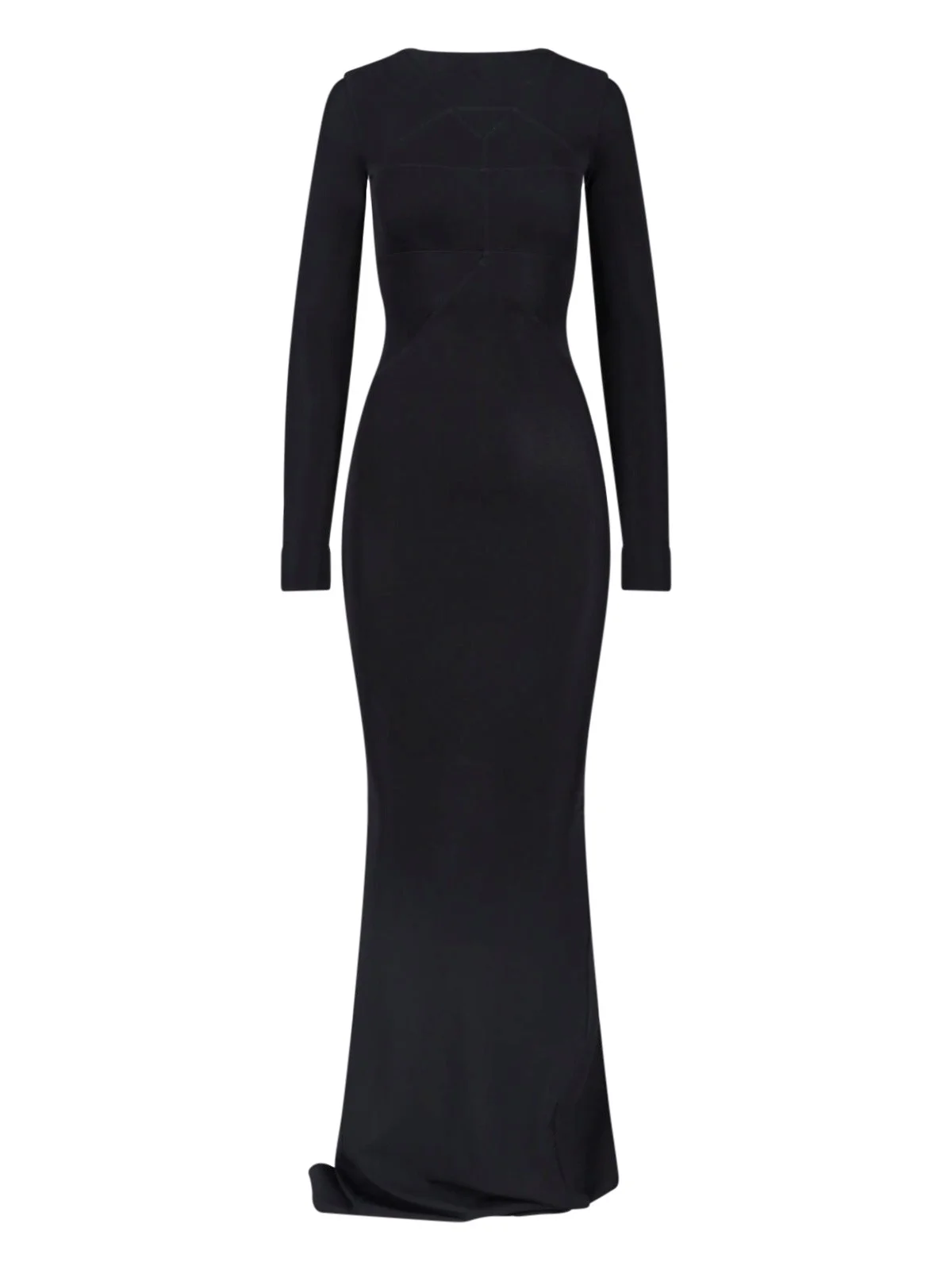 - MAXI DRESS IN BLACK VISCOSE RICK OWENS - RIBBED TEXTURE - ROUND NECKLINE - LONG SLEEVES - A BACK SLIT PRODUCT INFO PRODUCT CODE RO01F6589 JSV09 COMPOSITION: 96% VISCOSE, 4% ELASTANE SIZE AND FIT: REGULAR FIT MADE IN: ITALY
