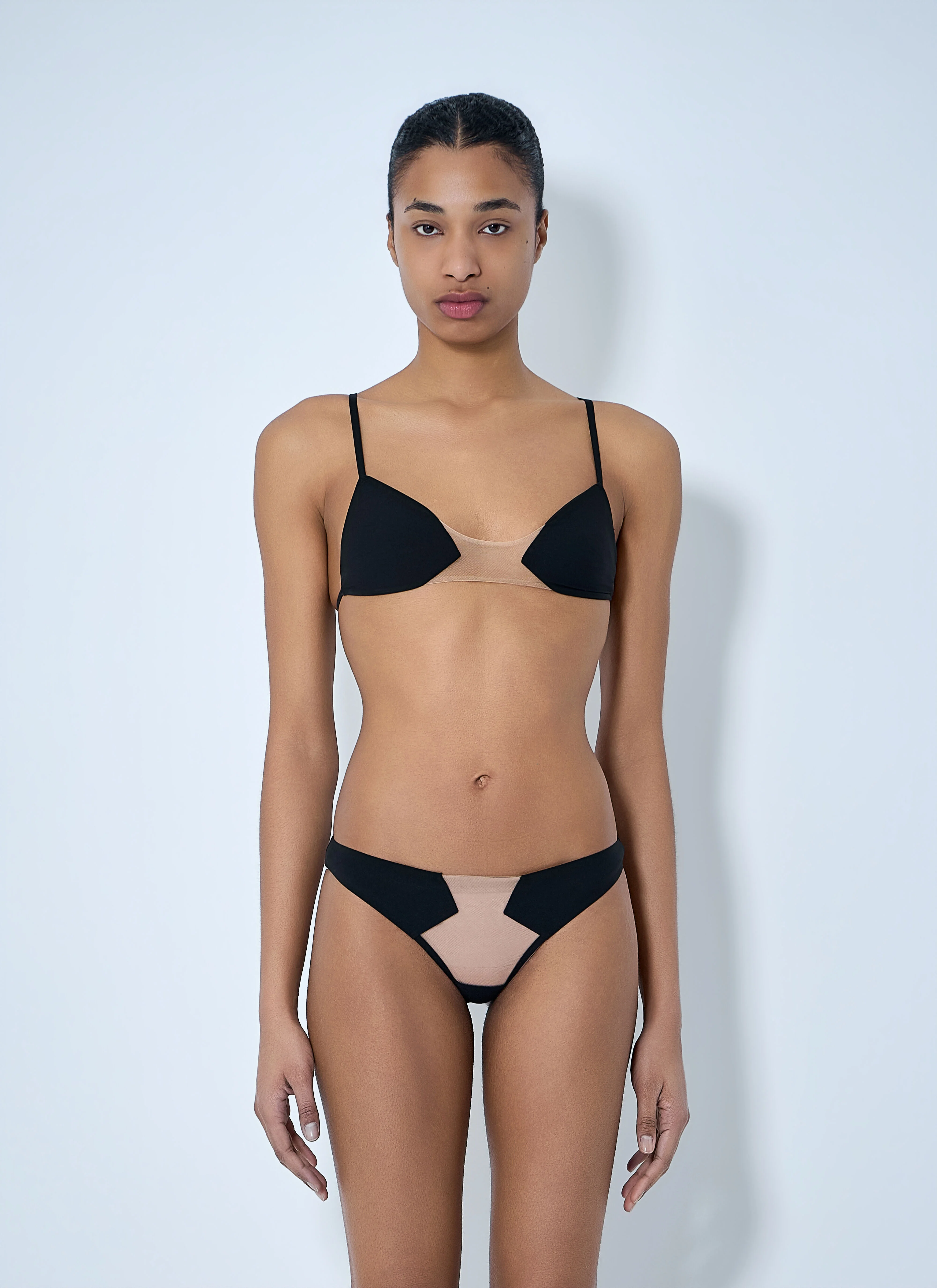 Bikini set with mesh panels and adjustable straps. - Adjustable shoulder straps - Mesh panel detailing - Elasticated waistband - 79% Nylon 21% Elastane - Color: Black - Code: RO01F6096 TULY 0921