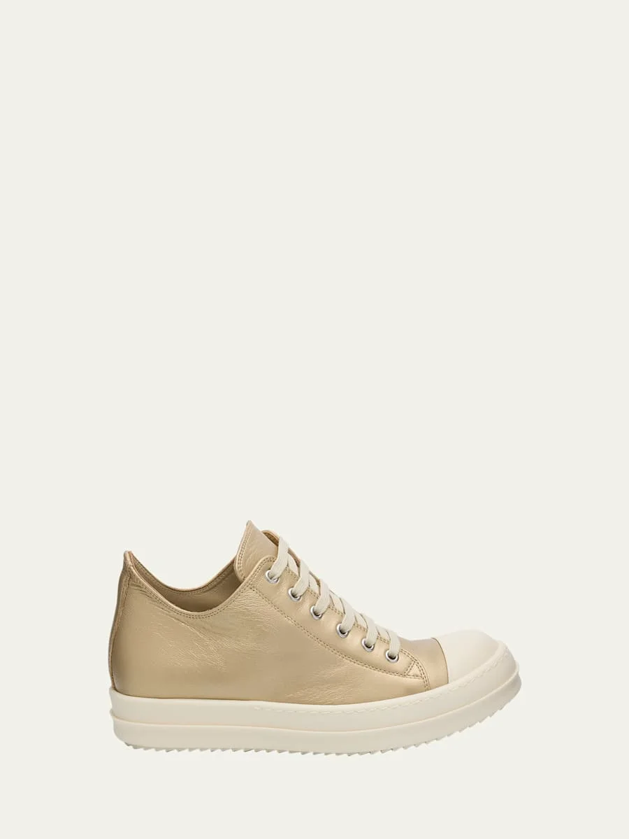 Rick Owens low-top sneakers in metallic lambskin leather Flat heel Round cap toe Tie/Lace-up vamp Rubber outsole Lining: Leather Made in Italy Online Inquiries: BGS21_X6VVW| Store Inquiries: #5008641