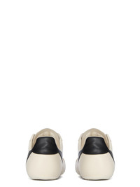 RICK OWENS FW25 CONCORDIANS MINIMAL SNEAK IN MILK/BLACK/MILK FULL GRAIN COW LEATHER THIS MINIMAL SNEAK IS A SIMPLIFIED VERSION OF OUR RUNNER COLLECTION. IT IS UNDER-ANKLE HEIGHT. THEY FEATURE A THIN SHARK TOOTH SOLE, SIX EYELETS, LACES AND SIGNATURE INTEGRATED ANGLED CONTRAST COLOR SIDE STRIPE THIS MEDIUMWEIGHT FULL GRAIN COW LEATHER HAS A FLAT AND MATTE SURFACE FINISH AND IS SPECIFICALLY TANNED FOR SHOES WITH AN ABRASION-RESISTANT FINISH THIS TANNERY IS LWG CERTIFIED WITH A BRONZE RATING COLOR: MILK/BLACK/MILK MATERIAL: UPPER 100% COW LEATHER LINING 100% CALF LEATHER INSOLE 100% CALF LEATHER SOLE 100% RUBBER