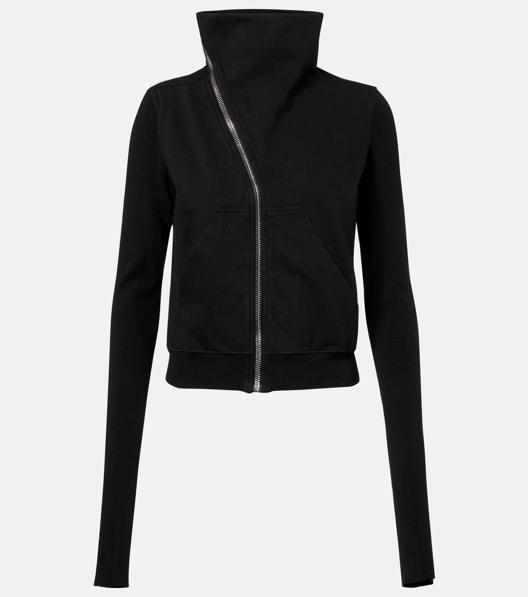 Aptly nicknamed The Lord of Darkness, Rick Owens brings gothic and industrial inspiration to avant-garde design. Made from soft cotton jersey, the Mountain hoodie comes in a fitted silhouette with a high neckline and features an asymmetric zipper fastening. Product Details - Material: 100% cotton - Care instructions: hand wash - Made in Italy - Designer color name: Black - Item color: black - Closure: zipped front - Collar: mockneck - Pockets: patch pockets - Hem: ribbed - Item number: P01069233 Size & Fit - True to size - Straight fit - Slightly stretchy fabric - Slightly cropped - The model seen in the picture is 178cm-5'10" and wearing a size XS