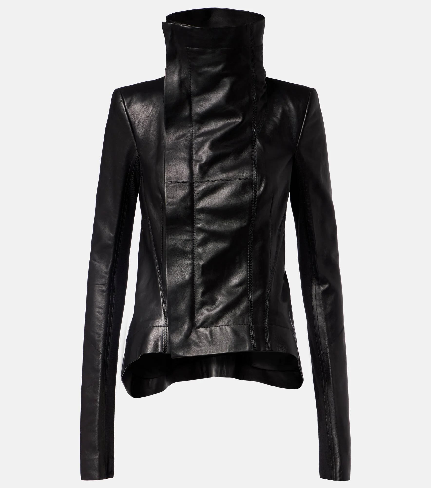 Aptly nicknamed The Lord of Darkness, Rick Owens brings gothic and industrial inspiration to avant-garde design. The Naska biker jacket is crafted from supple leather and boasts zipped front closure and shoulder pads for added structure. Product Details - Material: 100% lamb leather - Care instructions: specialist clean - Made in Moldova - Color: black - Designer color name: Black - Trim: 100% virgin wool - Lining: 100% cupro - Details: 100% water-buffalo horn - Hardware color: silver - Closure: zipped front - Pockets: internal pockets - Item number: P01137284 Size & Fit - True to size - Shoulder pad inserts - Cinched waist - Partly stretchy fabric - Falls below the hip - The model seen in the picture is 178cm-5'10" and wearing a size IT 40