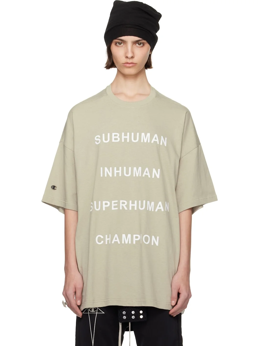 GOTS-certified organic cotton jersey T-shirt. · Rib-knit crewneck · Text and logo embroidered at front · Offset shoulder seams · Dropped shoulders · Embroidered logo patch at cuff · Central seam at back Part of the Rick Owens x Champion collaboration. Supplier color: Pearl 100% organic cotton. Made in Italy 252232F110002