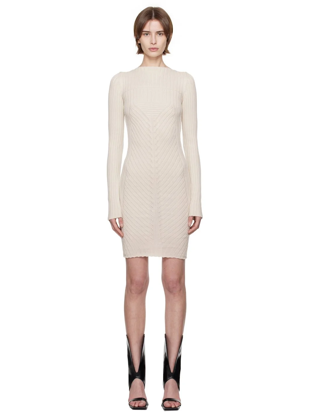 Heavyweight rib-knit cotton minidress. · Boat neck · Open back · Central garter-stitch stripe at back Supplier color: Dinge 100% cotton. Made in Italy 251232F052002