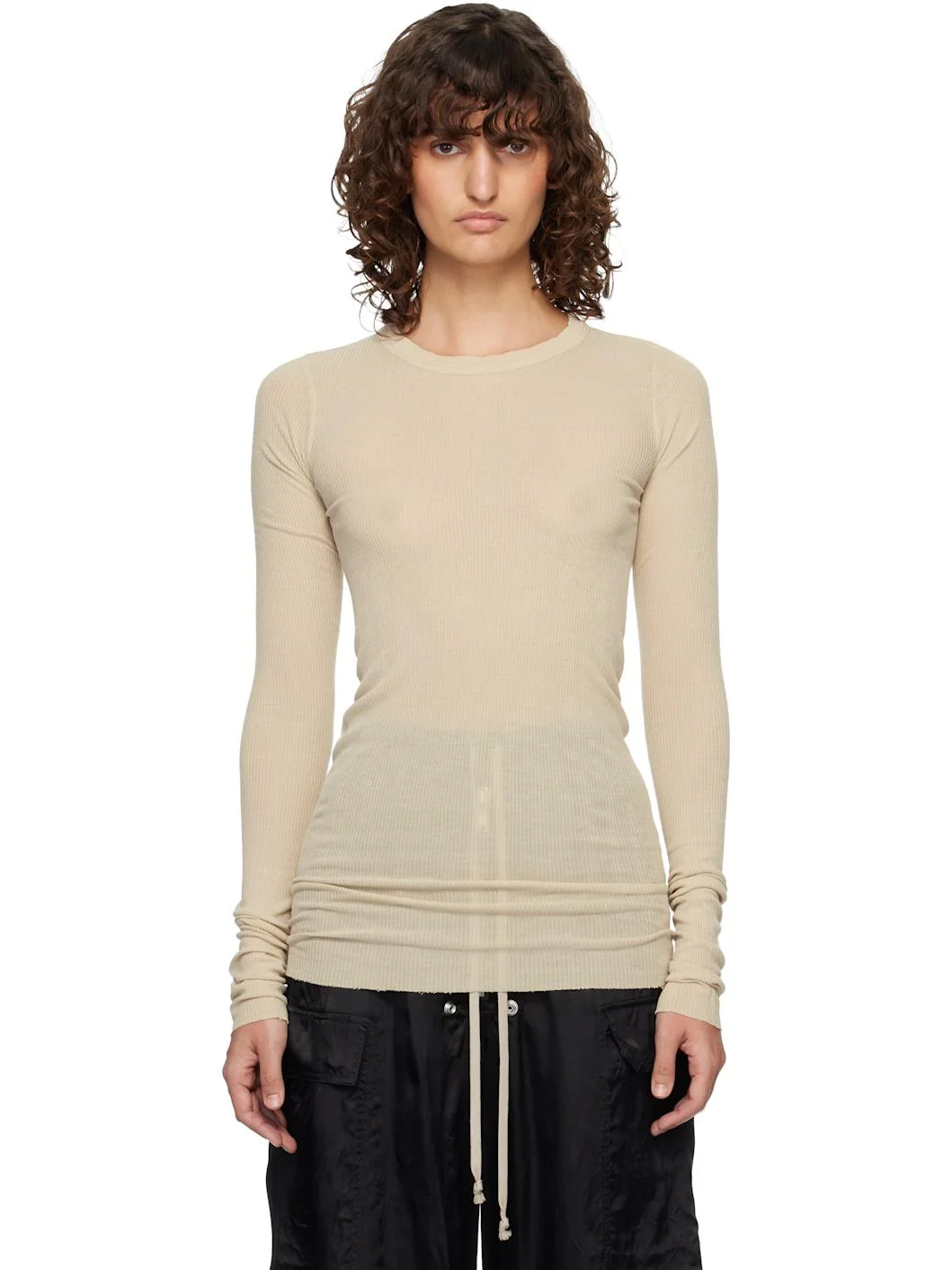 Rib-knit viscose-blend T-shirt. · Rib-knit crewneck · Raw edge at hem and cuffs Supplier color: Sand 88% viscose, 12% silk. Made in Italy 261232F110013